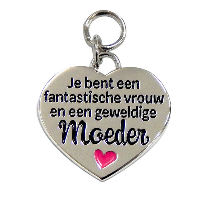 Op de charm staat de tekst "Je bent een fantastische vrouw en een geweldige Moeder"