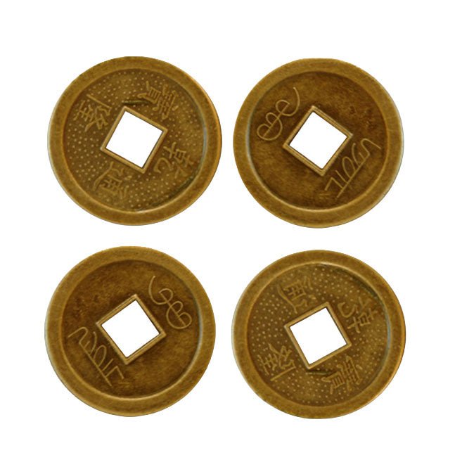 De muntjes zijn een kopie van de oude Chinese muntjes en stammen uit de tijd van de tien grote keizers tijdens de Qing-dynastie. De geluksmuntjes zijn rond met een vierkant gat in het midden.