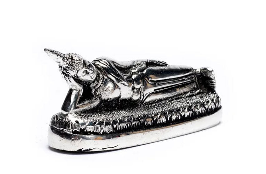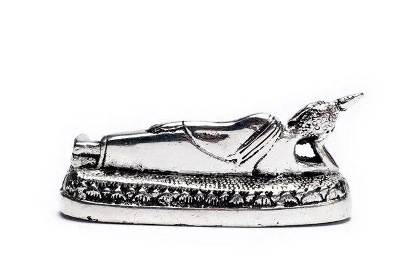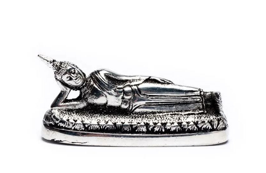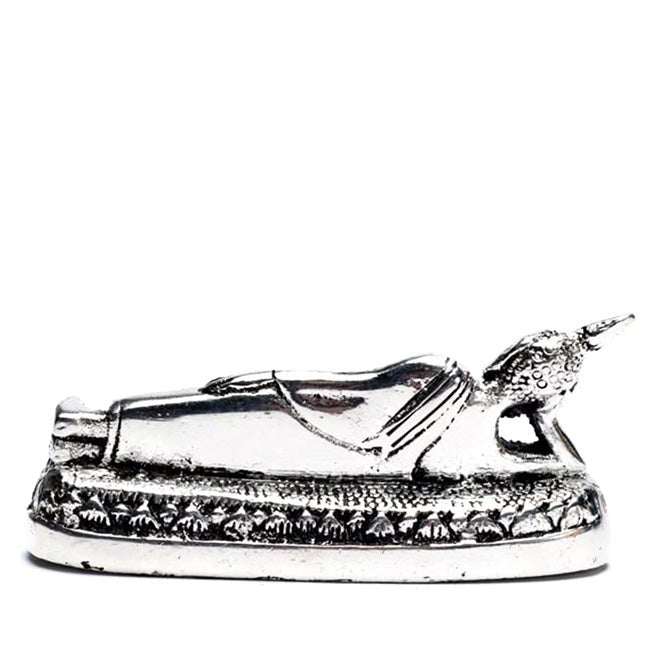 De Boeddha ligt op zijn rechterzij met zijn linkerarm langs het lichaam gedrapeerd en de rechterarm als kussen en steunt het hoofd. Een van de meest dramatische en adembenemende liggende Boeddhabeelden is te vinden in Wat Pho in Bangkok.