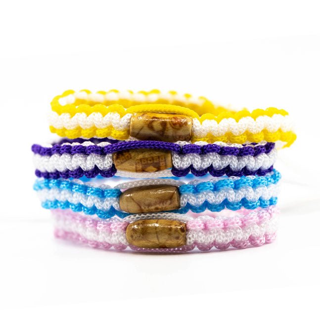 Geluksarmbandje Thailand bestaat uit geweven en geknoopt katoen.