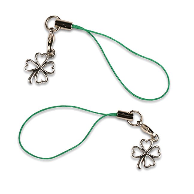 Er zit een lus aan de klavertjes zodat het ergens aan gehangen kan worden. Hang bijvoorbeeld een klavertje aan een kaartje of cadeautje. Of als leuk uitdeelcadeautje voor geluk.