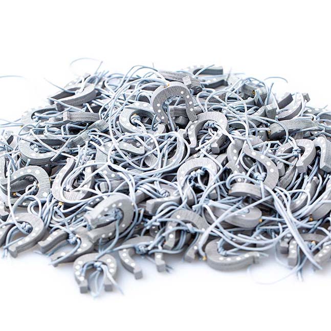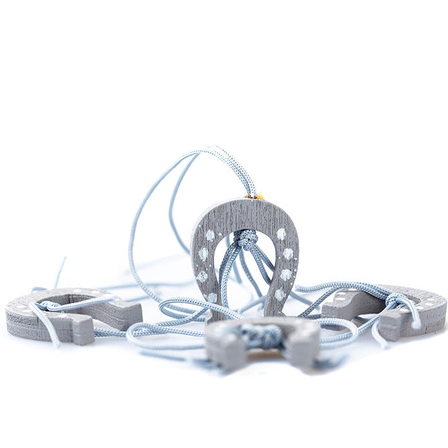 Deze gelukspoppetjes zijn in de vorm van een hoefijzer. De hoefijzertjes hebben een lus zodat je ze kunt hangen aan bijvoorbeeld een sleutelbos of cadeautje.