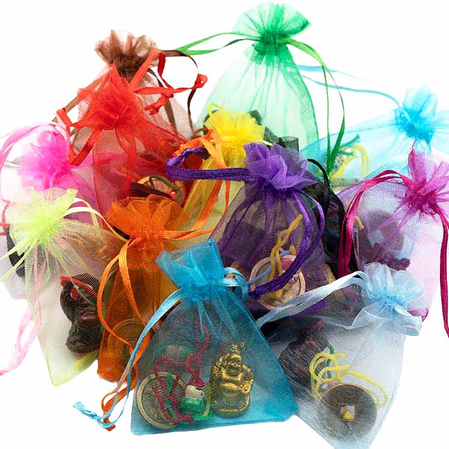 - Bijzonderheden: de organzazakjes worden in random kleuren geleverd (20-24 kleuren), de mini boeddha's zijn er in 6 verschillende uitvoeringen in de kleuren zwart, bruin en goud die eveneens random worden geleverd