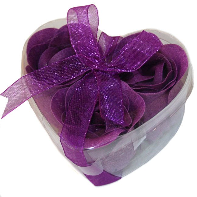 Het doorzichtige geschenkdoosje heeft de vorm van een hartje. De mooie gedetailleerde roosjes zijn gemaakt van flinterdun zeeppapier.