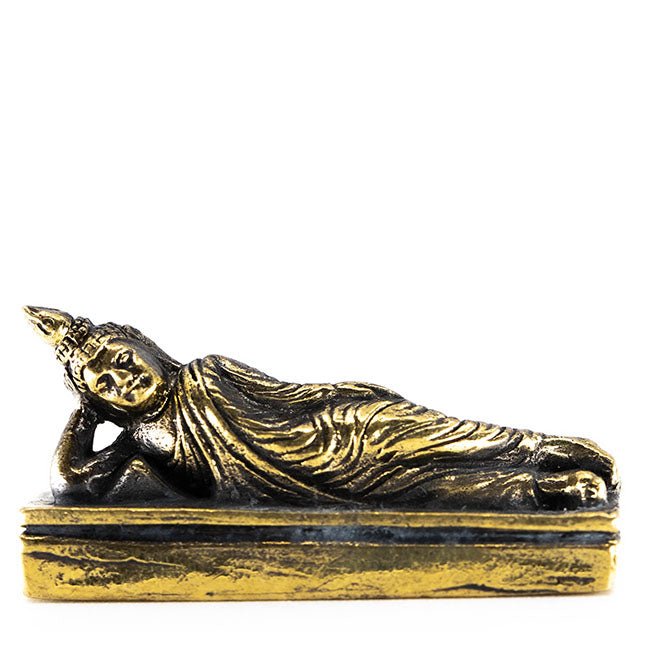 Een liggende Boeddha ligt op zijn rechterzij en zijn hoofd wordt ondersteunt door zijn rechterhand. Een liggende of rustende Boeddha is in de laatste fase van het leven.