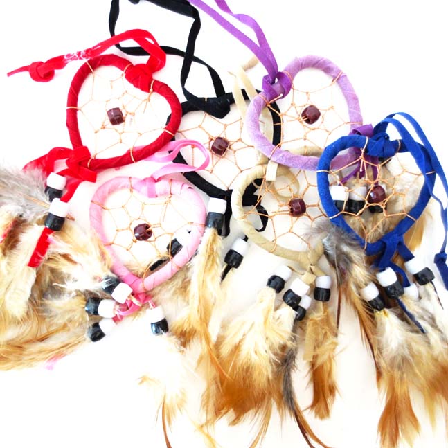 Mini dromenvangers hartje zijn leuke betaalbare uitdeelcadeautjes. Een dromenvanger boven een bed vangt de nare dromen zodat alleen de leuke dromen worden gedroomd. De dromenvangers zijn in de kleuren beige, blauw, bruin, paars, rood, roze en wit. Deze worden random geleverd op basis van beschikbaarheid.
