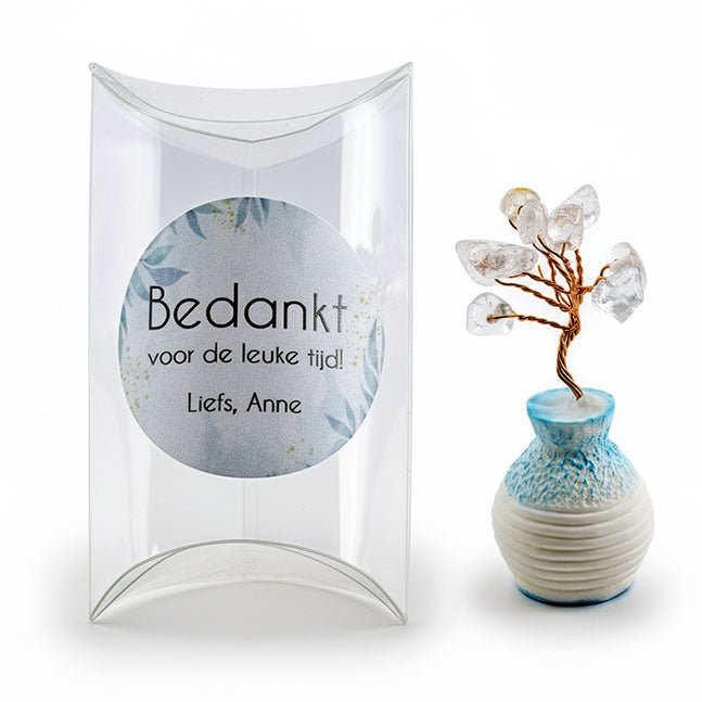 Krachtige edelstenen: Elk boompje is uniek en brengt een positieve sfeer in de ruimte.