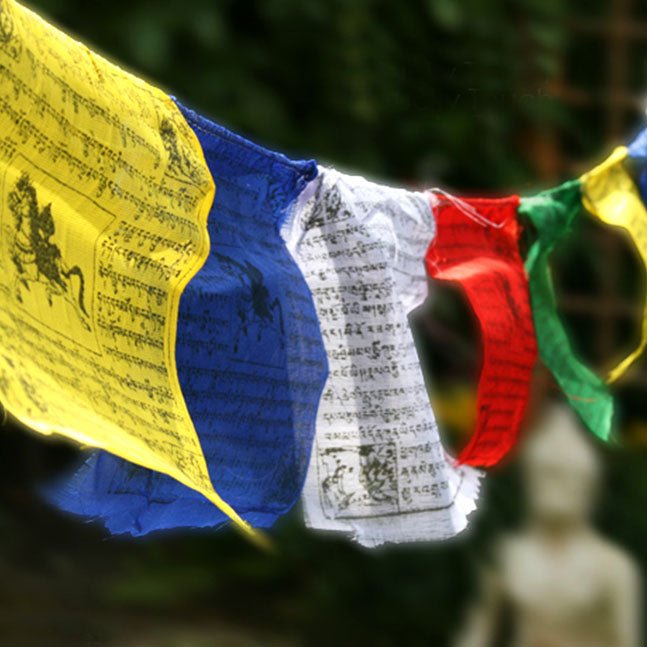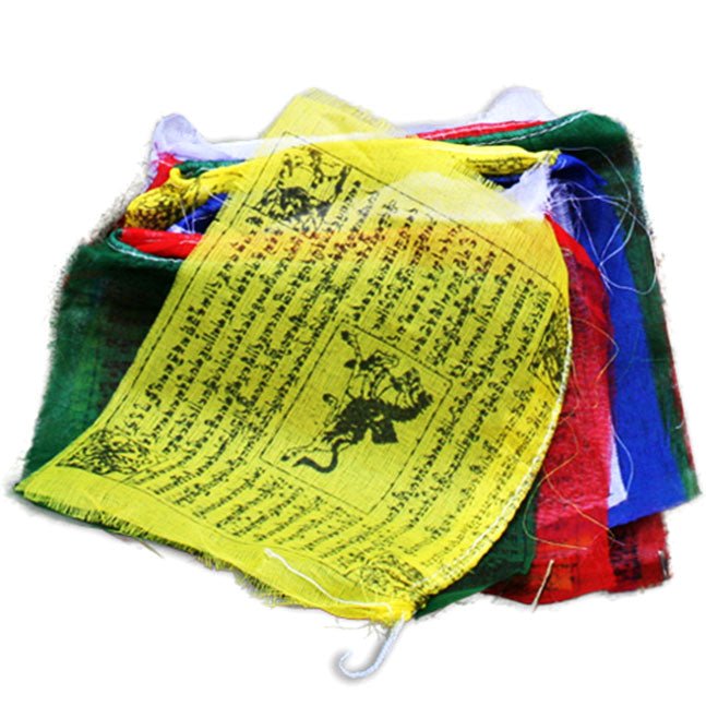 Deze gebedsvlaggetjes kunt u het beste ophangen vroeg in de ochtend op een winderige en zonnige dag. De vlaggetjes verspreiden vrede, compassie, kracht en wijsheid.