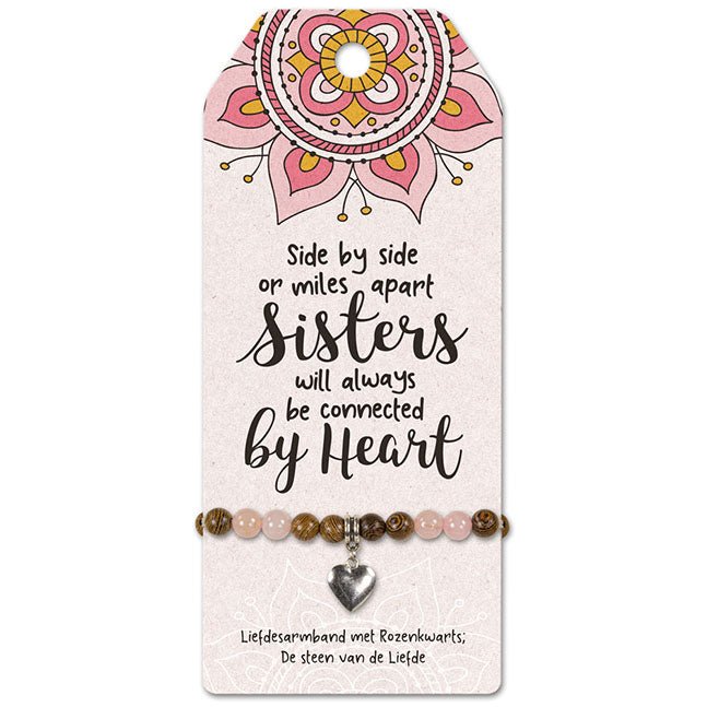 Geluksarmband met Rozenkwarts, de steen van de Liefde is een mooi cadeautje om je waardering en liefde voor je zus te laten zien.