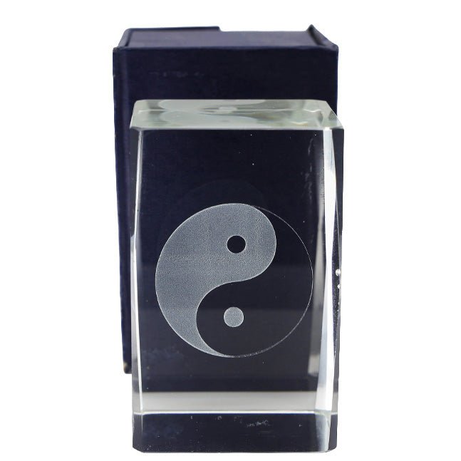• Inhoud: laserblok Yin Yang symbool in cadeaudoosje